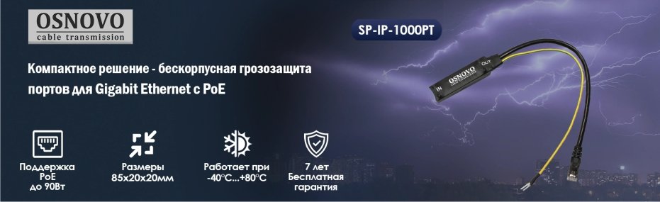 Линейка защитных устройств OSNOVO пополнилась моделью SP-IP-1000PT. Это миниатюрное решение предназначено для защиты оборудования Gigabit Ethernet от скачков напряжения и грозовых разрядов. Главная особенность новинки — поддержка сверхмощного PoE до 90 Вт, что позволяет использовать её с самыми современными PTZ-камерами и точками доступа.