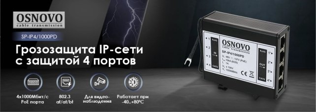 Чтобы избежать простоев и дорогостоящего ремонта, важно использовать профессиональные решения. Одним из таких устройств является новое устройство грозозащиты SP-IP4/1000PD на 4 порта с монтажом на DIN-рейку, разработанное специально для локальных сетей со скоростью до 1 Гбит/с и поддержкой PoE.
